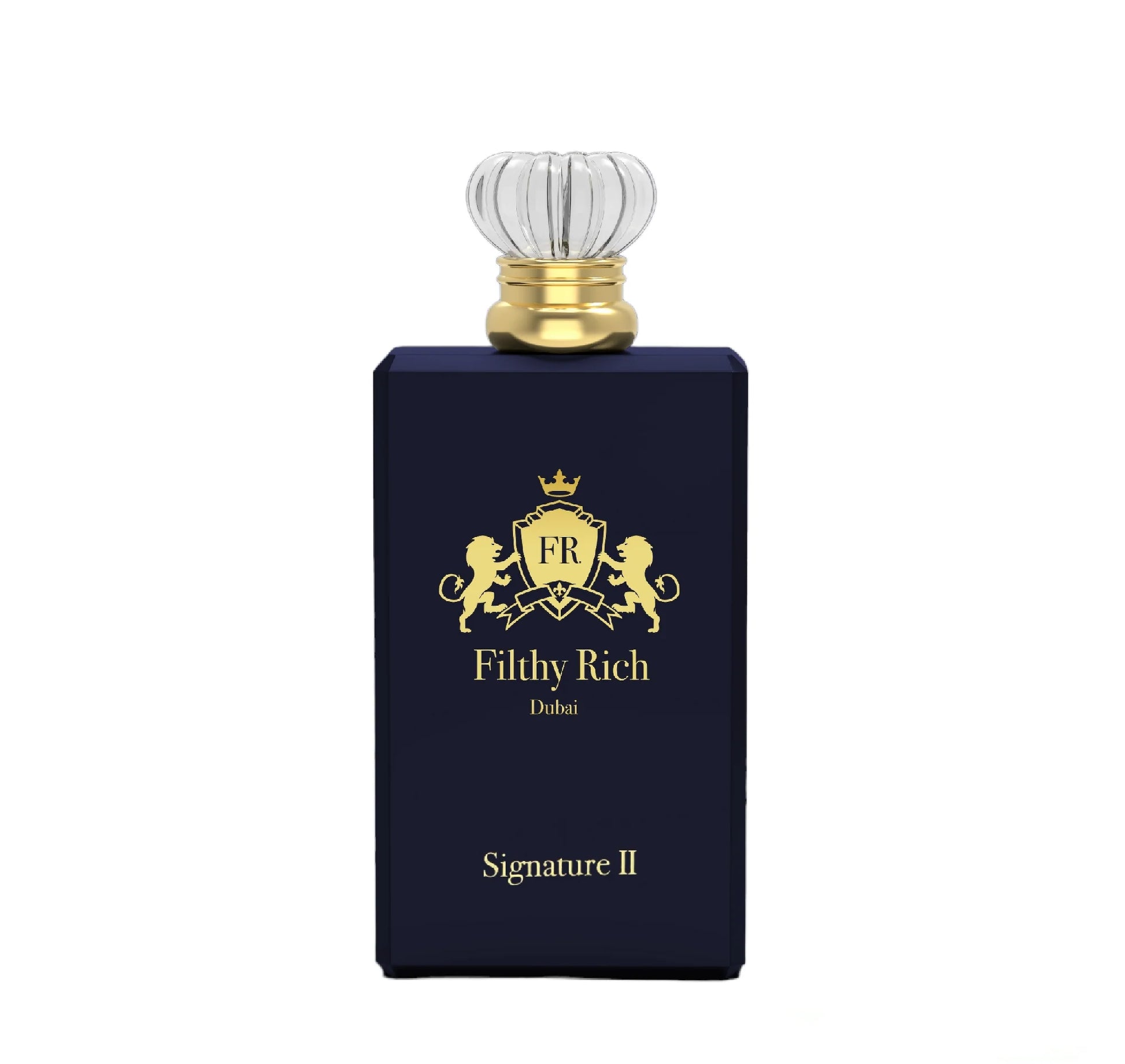 This luxurious fragrance blends notes of rose, grapefruit, and lily of the valley with warm hints of musk, amber, cedar, and patchouli. Experience the richness of this exquisite scent and elevate your senses to a whole new level. Embrace the exclusivity of Filthy Rich Signature II EDP.